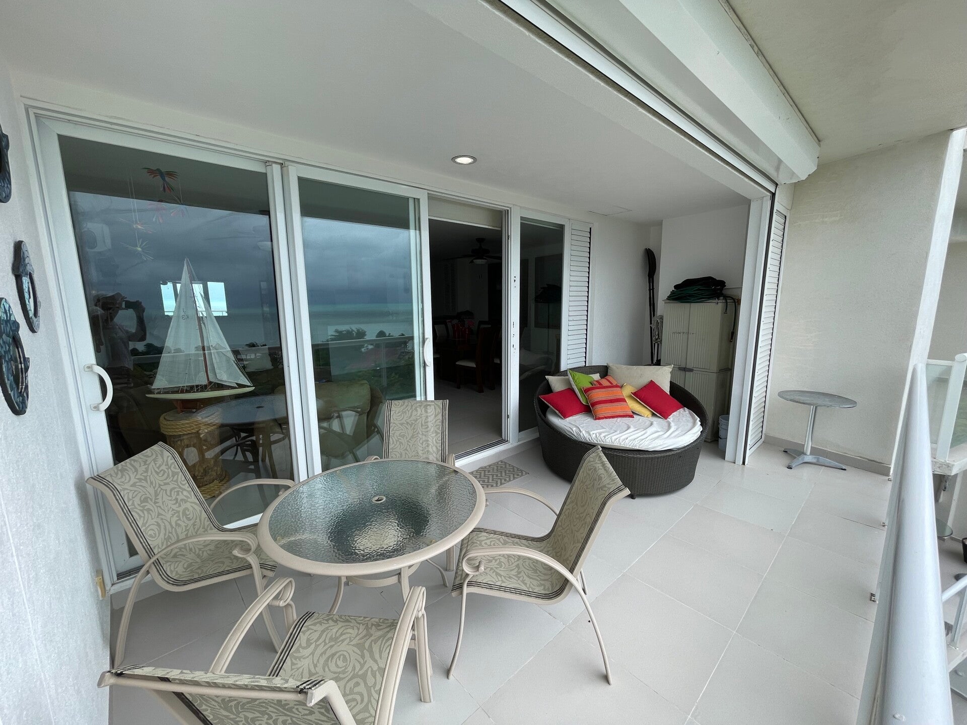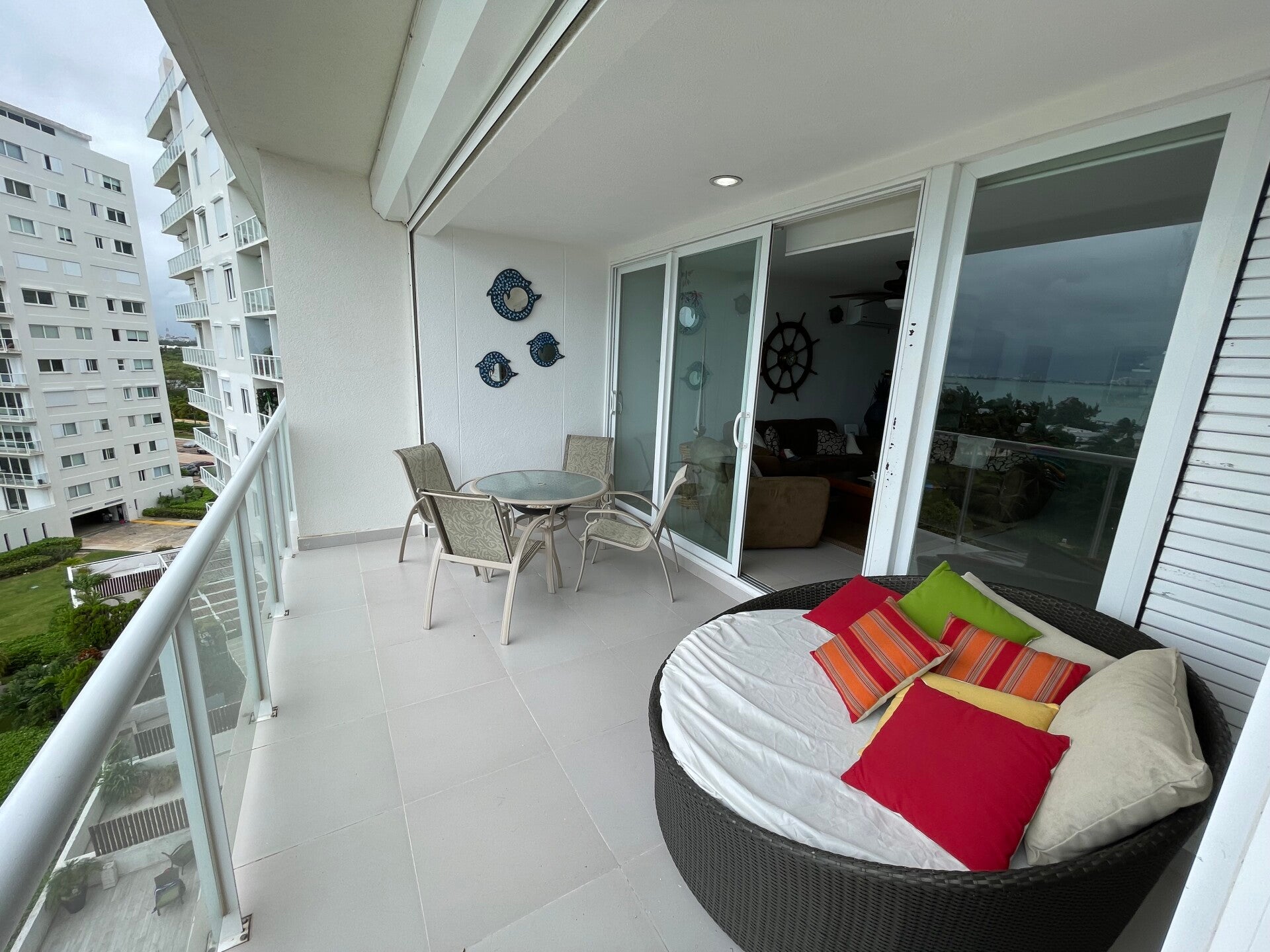 - Distribución: Espacio suficiente para un camastro daybed circular y un desayunador exterior para cuatro personas.