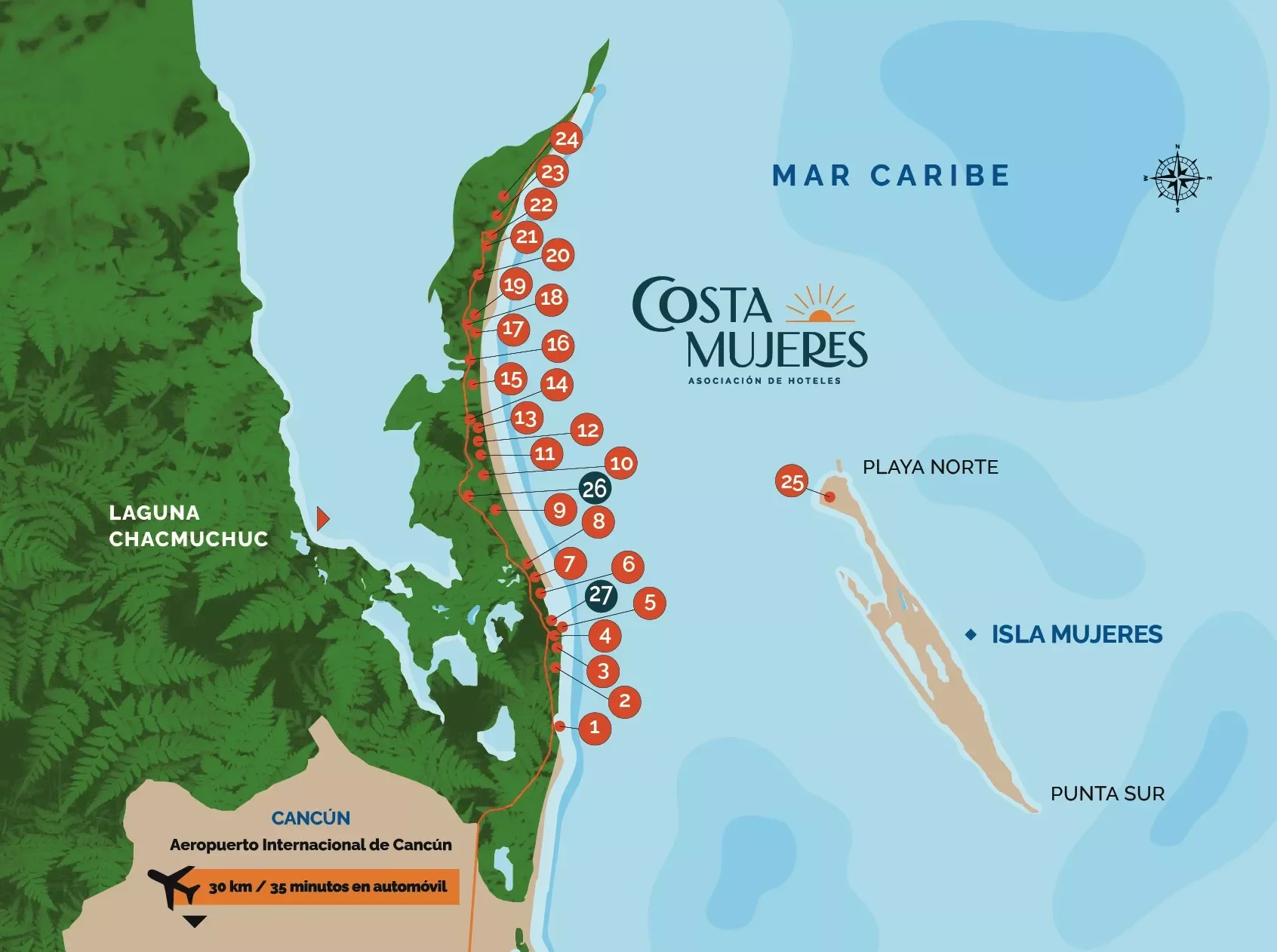Corredor Turístico - Costa Mujeres: Zona con mayor crecimiento hotelero y plusvalía en el Caribe Mexicano.
